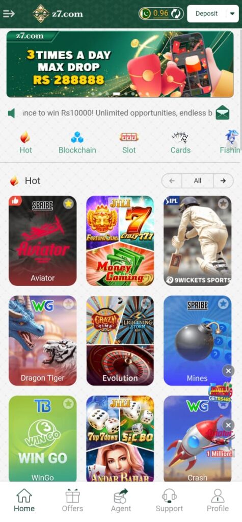 Z7 Casino Game APK is an online entertainment and gambling platform offering Pakistani players a variety of real money games. From casino games to live dealer tables, cards, lottery, and sports betting, Z7 Game provides a secure and fun environment for users to play and earn real cash rewards.